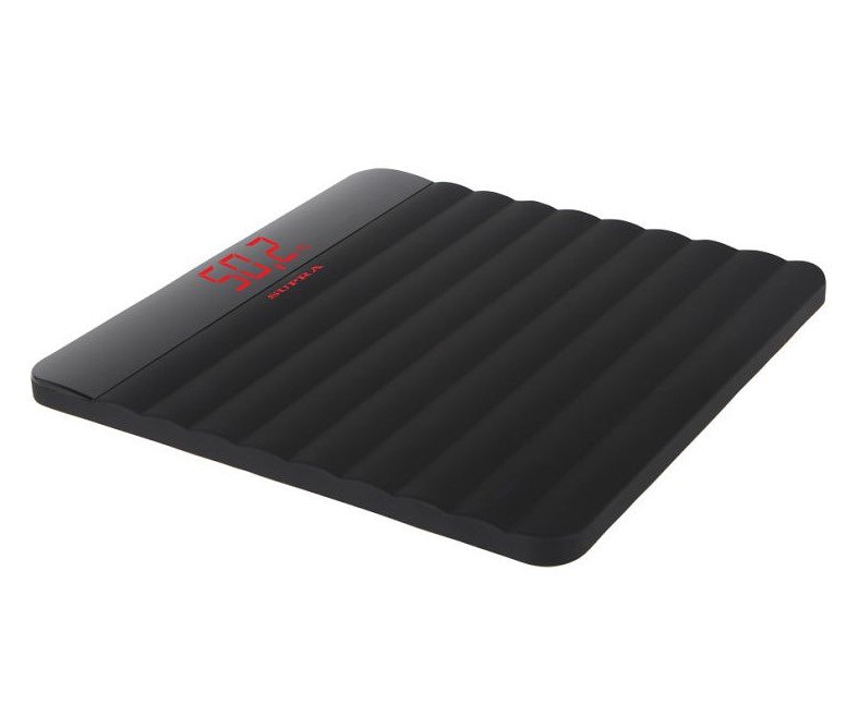 Spektakularna mat plastika, ogromni brojevi od 4 centimetra u crvenoj i valovitoj površini – izgled ovih podnih vaga odmah kao i njihovi budući vlasnici. Međutim, primjetan dizajn ne samo da privlači pažnju i ukrašava unutarnji interijer - zahvaljujući tome, proces vaganja je uvelike olakšan. Tako je na matiranoj površini obloženoj mekim dodirom vrlo ugodno postati bosonog. Valovitost pruža stabilniji položaj i masira stopala, a ogroman brojčanik ne dopušta čak ni kratkovidnoj osobi da se pogrešno shvati u rezultatima.