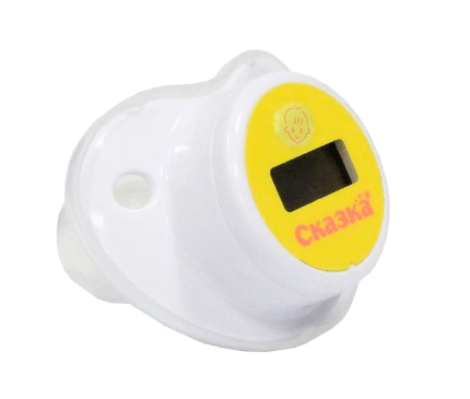 Dječji termometar, izrađen u obliku bradavice, postaje spas za majke beba i ne-nemirne starije žene, kojima je teško mjeriti temperaturu običnim termometrom. Baza je izrađena od plastike, sama bradavica je izrađena od sigurnog silikona. Minimalna pogreška nije veća od 0,1 ° C. To potvrđuju brojne recenzije korisnika - pišu da se očitanja gotovo podudaraju s uobičajenim živinim termometrom.