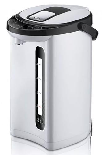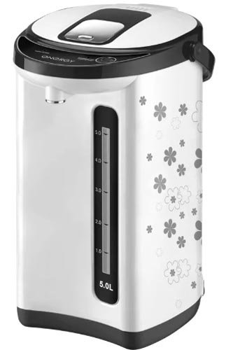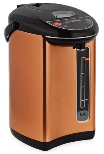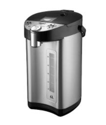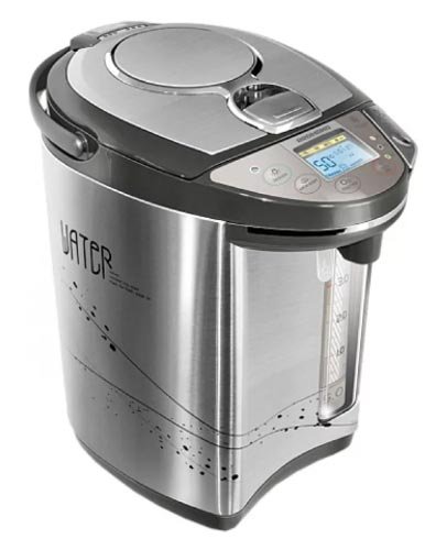 Elegantni termopot oduševit će korisnike svojom funkcionalnošću i praktičnošću. Proizvođači su se pobrinuli da ima dovoljno vode za veliku tvrtku i napravili volumen spremnika od 6 litara. Uređaj je izrađen od nehrđajućeg čelika, što mu omogućuje dugi niz godina rada bez prekida. Zahvaljujući snazi grijanja, sadržaj je dovoljno brzo prokuhao. Nakon toga automatski održava temperaturu nekoliko sati zbog automatske funkcije. Također, tekućina se može ponovno prokuhati ako je potrebno.