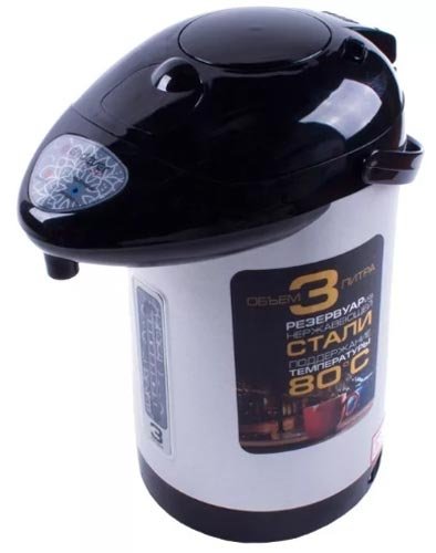 Termalna zaliha po pristupačnoj cijeni s dovoljno velikim volumenom spremnika za vodu – SUPRA TPS-3004. Savršen je za veliku obitelj ili za ured - kapacitet je 5 litara, što je dovoljno da se napravi veliko piće. Osim toga, termopot ima funkciju termos, zadržava zagrijanu vodu dugo vremena na temperaturama od 90 stupnjeva. Tijelo Thermopote opremljeno je indikatorom razine vode koji vam omogućuje da vidite njegovu količinu bez otvaranja poklopca.