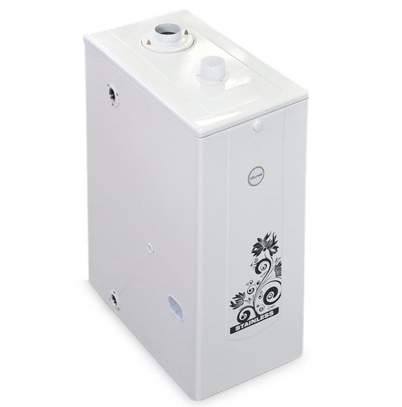 Što je još važno, uređaj ne zahtijeva spajanje na mrežu i radi u uvjetima prirodne cirkulacije rashladnog sredstva u krugu zbog razlike u gustoći hladne i tople vode. Model 10EVM ima dvostruki krug i omogućuje zagrijavanje protočne vode do 45 °, što ga čini prikladnim za sanitarne svrhe. Jedinica spada u ekonomsku klasu, tako da od elemenata sigurnosti i udobnosti pruža samo nepostojan osjetnik plina, senzor potiska i integrirani termometar. Odlikuje se i malim dimenzijama (760x380x385 mm), ekonomičnosti (potrošnja goriva je 1,2 m.)3/ sat) i atraktivan izgled.