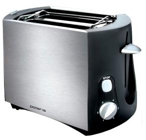 Prvo mjesto je Polaris PET 0804A. To je jednostavan, ali funkcionalan model koji ima sve potrebne opcije za brzo prženje. Uređaj ima snagu od 800 W, tako da se nosi s dvije kriške kruha. Uz glatku kontrolu temperature, pogodno je postaviti optimalnu vrijednost za visokokvalitetne tosting tost. Praktično metalno tijelo ne nakuplja masnoće i lako se čisti od male prljavštine.