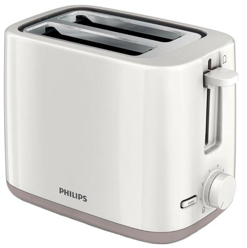 Na trećem je mjestu Philips HD 2595. To je jedan od najatraktivnijih modela u ovoj klasi po cijeni. Uređaj se može pohvaliti sa 7 stupnjeva prženja, lako je odabrati najbolju opciju. Podešavanje temperature se obavlja glatko pomoću okretne sklopke. Ako je potrebno zaustaviti postupak kuhanja, možete koristiti gumb za odustajanje. Za točan položaj kriški kruha unutar tostera, dostupno je automatsko centriranje.