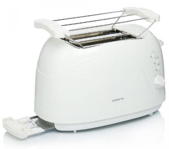Otvara vrh najboljeg tostera Polaris PET 0702L, omogućujući vam da prilagodite stupanj pečenja. Ispod jedinice je postavljen roštilj, gdje možete odmrznuti i zagrijati hranu. Postoji gumb za odustajanje, teško je pogriješiti prženjem. Toster ima 2 komada odjednom, maksimalna snaga je 450 W. Uređaj se tijekom rada ne zagrijava, a funkcija dodatnog podizanja spriječit će zaglavljivanje kruha. Proizvođač kaže jedinstveno prženje, iako se kupci žale na to. Pogodno je očistiti kliznu paletu od mrvica.