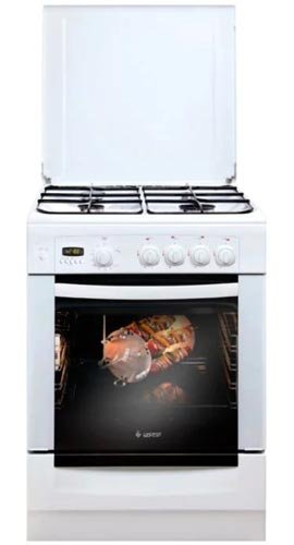 Plinski roštilj omogućuje diversifikaciju prehrane i kuhanje ukusnog mesa. U pećnici je ugrađena kontrolna funkcija plina. Komplet uključuje rešetke od lijevanog željeza. Mehanička kontrola, rotacijski prekidači umjereno zategnuti, postoji funkcija zaštite od djece (okretanjem gumba morate pritisnuti silom). I pećnica i plamenici opremljeni su električnim sustavom paljenja. Iz minusa moguće je izdvojiti samo odsutnost zaštitnog isključivanja i kontrolu plamenika.