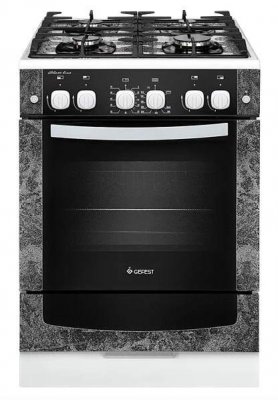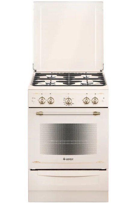 Sljedeći model GEFEST 6100-03 0001 zauzima prvo mjesto na domaćem tržištu. Temelji se na visokoj kvaliteti, pouzdanim materijalima, pristupačnoj cijeni i izvrsnoj opremi. Pećnica ima dobar kapacitet (52 l), koja služi za kontrolu propuštanja plina, ima unutarnje osvjetljenje, kao i mogućnost kuhanja hrane u načinu "grill". Ploča se sastoji od 4 plamenika, među kojima je i „brzo grijanje“. Korisna značajka je prisutnost automatskog paljenja. Mehanička kontrola se odvija na trošak posebnih okretnih prekidača, za praktičnost postoji zaslon. Neobičan tamno smeđi ton tijela daje modelu elegantan izgled. Kupci ostavljaju samo pozitivne povratne informacije o ovom tanjuru.