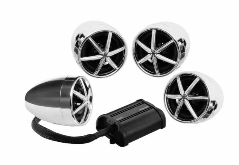 Sustav zvučnika sastoji se od četiri zvučnika s jednom trakom dimenzija 3 inča. Vodootporno kućište znači da se zvučnici mogu montirati izvana na vozila kao što su motorne sanke, motor ili brod. Uređaj ima pojačalo i bežičnu Bluetooth vezu, što vam omogućuje korištenje akustike u svim uvjetima, uključujući i unutar automobila.