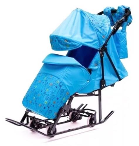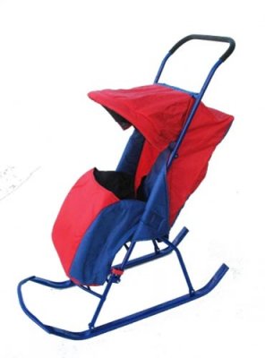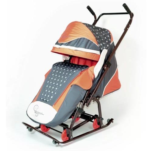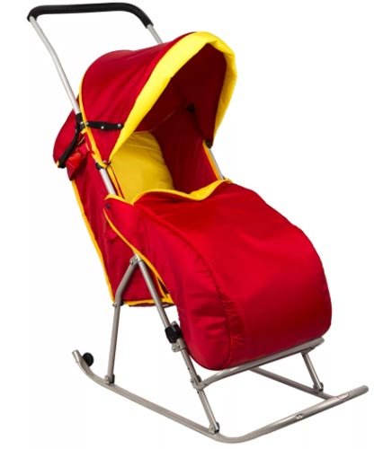 Jednostavna opcija proračuna. Sanjke kolica proizvodi tvrtka u minimalističkom stilu i predstavljene su u dvije verzije - plavo-crvena i plavo-narančasta. Model je idealan za snježna područja, gdje nema potrebe za korištenjem kotača za brzo pomicanje. Zbog svoje male konfiguracije, kolica će majci pružiti visoku pokretljivost i omogućiti vam da brzo dođete na pravo mjesto. Uzorak je vrlo lagan i kompaktan - njegova težina je samo 5 kilograma, a mehanizam za sklapanje omogućit će vam pohranu uređaja na najmanjoj površini. Zagrijani pokrov zaštitit će dijete od lošeg vremena.