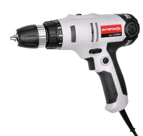 Kada morate raditi u stambenim prostorijama gdje postoji pristup mrežnom naponu od 220 V, možete koristiti mrežni odvijač Interskol DSh-10 / 260E2. Alat teži samo 1,4 kg, ima male ukupne dimenzije. Sa snagom od samo 260 vata, motor proizvodi okretni moment od 25 Nm. To je dovoljno za bušenje i rad s učvršćivačima. U glavi stezne glave lako je montirati bit i bušilice debljine 0,8-10 mm. Uređaj ima obrnuto, brzina vrtnje se regulira pomoću elektroničke jedinice. Duljina mrežnog kabela je 2 m, što vam omogućuje rad bez produžnog kabela.