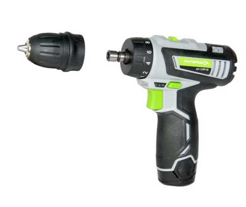 Ovaj akumulatorski odvijač kupljen je kao kućni alat i za obavljanje raznih poslova vezanih uz profesionalnu djelatnost. Njena neupitna prednost je najpovoljnija cijena u Interskolovoj liniji bežičnih alata. Istodobno, on posjeduje sve atribute elitnih modela. Postoji praktičan ergonomski slučaj, punjač i rezervna punjiva baterija. Alat ima dvije brzine (za bušenje i uvijanje vijaka), pozadinsko osvjetljenje i obrnuto, a uravnotežen dizajn osigurava jednostavnost rada, unatoč težini uređaja od 1,58 kg.