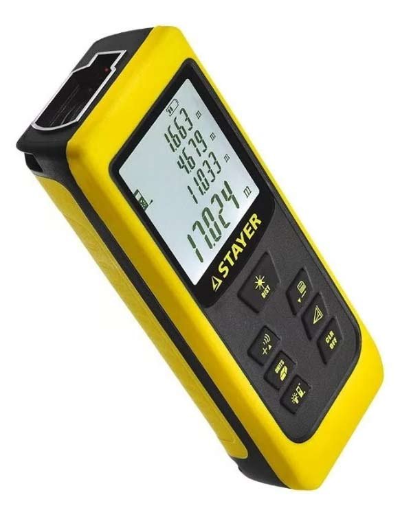 Laserski daljinomjer STAYER SDL-50 pogodan je za rad ne samo u zatvorenom prostoru. Zahvaljujući povećanoj snazi radijatora, ona može mjeriti segmente duljine do 100 metara, te će u mnogim slučajevima biti korisna pri obavljanju radova na otvorenom. Uz to, za nekoliko sekundi, jedna osoba može izmjeriti i izračunati površinu ili volumen prostora, napraviti neizravna mjerenja prema Pitagori. Također će biti korisna funkcija dodavanja ili oduzimanja dobivenih vrijednosti.