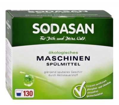 Njemački prašak za perilice posuđa SODASAN je ekološki prihvatljiv način za ljude. U njegovom sastavu nema štetnih tvari, ali postoje korisne komponente, ne samo čišćenje mrlja na posuđu, nego i zaštita od pojave kamenca u samom stroju. Prilikom korištenja ove tehnike prah će trajati dugo vremena. Za učinkovito pranje pri punom opterećenju dovoljno je samo 15 g proizvoda, pa će potrošnja biti minimalna. Lijep bonus je oslobađanje od razvoda i dodavanje sjaja. SODASAN će biti velika pomoćnica za bilo koju domaćicu. Poseban sastav omogućuje korištenje alata čak i za pranje dječjih posuđa.