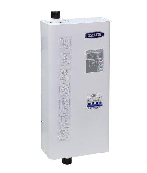 Gledajući cijenu ovog električnog kotla, netko može sumnjati u njegovu pouzdanost. Međutim, nakon proučavanja njegovih karakteristika, nismo otkrili očite nedostatke u dizajnu. Štoviše, po broju funkcija nije jednako čak ni među skupljim modelima. U 9-kilovatnom električnom kotlu, dizajniranom za grijanje 90 m2, implementiran je niz „luksuznih“ značajki: elektroničko upravljanje na temelju rada 5 kontrolera, zaštita upravljačke jedinice od prenapona do 400V, vremenski ovisna automatska korekcija temperature nositelja topline, funkcija povezivanja grijane podne i drugi