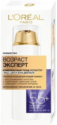 Najbolji omjer cijene i kvalitete može se pohvaliti kremom kremom stručnjaka L'Oreala. Ovo je popularan proizvod za žene u kategoriji starijih od 55 godina, koji nudi sveobuhvatnu njegu lica, vrata i dekoltea. Posebnost je trostruki učinak remodeliranja - obnova kontura, stezanje opuštenih tkiva, smanjenje dubokih bora.
