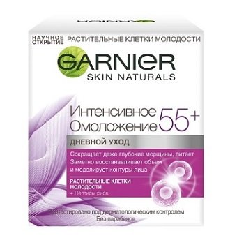 Hit prodaje - krema od Garniera Intenzivno pomlađivanje. Krema za žene 55+ nudi cjelovitu noćnu njegu. Alat je testiran pod dermatološkom kontrolom. Kao dio bez parabena. Posebnost je najbolja formula: biljne stanice mladosti, rižini peptidi, korisna ulja i ekstrakti. Kao rezultat toga, čak i smanjenje dubokih bora, prehrana, primjetan oporavak volumena i modeliranje kontura lica.