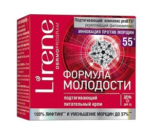 Ultra-popravljajući krem-eliksir za LIRENE kožu "Formule Youth 55+" ima izvrsno regenerirajuće djelovanje i za kratko vrijeme poboljšava stanje lica, vrata i dekoltea za najmanje 45% (prema proizvođaču)). Glavni sastojak proizvoda je proBTS3 kompleks, koji stvara višedimenzionalnu mrežu za trenutni lifting efekt. Rezultat korištenja ove inovativne komponente gotovo je identičan učinku medicinskog botoxa, ali isključuje invazivnu penetraciju. Ekstrakt bisera u sastavu čini kožu sjajnijom, a prisutnost vitamina i antioksidanata sprječava pojavu novih promjena u dobi. Idealan kao temelj za šminku.