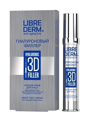 Krema "Hyaluronic Filler" iz serije protiv starenja iz Librederma - alat za dnevnu uporabu, djeluje kao alternativa za ubrizgavanje zrele kože kod žena starijih od 50 godina.Ova krema posljednje generacije uspjela je privući i korisnike i stručnjake. Sredstva za zaštitu od sunca (SPF 15) namijenjen je svim tipovima kože, ali prije svega vlasnicima osjetljivih tipova.