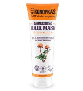 Organska ulja u sastavu hranjive maske od Dr. Konopka a. Alat učvršćuje pramenove, ali se ne smanjuje. Kovrče se lako mogu češljati i složiti, ali ne i izblijedjeti. S obzirom na prilično jeftinu cijenu, ona postaje dar za vlasnike tanke oštećene kose. Sredstva ide u tuba od plastike koja ne klizi u mokru ruku, povoljno otvara. Bolje je ne nanositi ga na korijene, dovoljno je da se povuče 10 cm. Lijep bonus je ušteda vremena, jer klima uređaj nakon ove maske nije potreban.