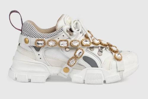 Dizajn modela inspiriran je planinarskim cipelama. Dajući luksuz, brand Gucci dodao je raznovrsne boje, skupe materijale (antilop i platno). Logo se nalazi na jeziku cipele. Njezin izgled nadahnut je idejama vintage SEGA znaka. Kamenje u lancima izrađeno je od kristala.To su super tenisice za ljubitelje HYIP-a.