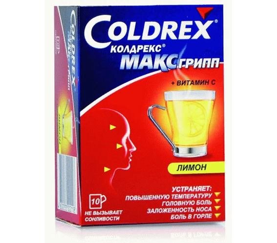 Puder s ugodnim mirisom limuna pomaže izbjeći pogoršanje hladnoće i ustati na noge za nekoliko dana, a to je zbog kombinacije komponenti različitog spektra: paracetamola (1000 mg), vitamina C (40 mg), fenilefrina (10 mg). Zahvaljujući djelovanju tih tvari postiže se istodobno ublažavanje simptoma: upala grla, nazalna kongestija i, prije svega, normalizira se tjelesna temperatura. Dakle, nema potrebe uzimati nekoliko različitih lijekova i postoji mogućnost da se uštedi novac. Proizvođač je koristio paracetamol u najvišoj pojedinačnoj dozi za odraslu osobu, pa je upotreba Coldrex MaksGrippa neprihvatljiva za osobe mlađe od 18 godina. Za početak temperature pada, morate čekati 30-40 minuta. Prodaje se u pakiranjima od 5 i 10 vrećica volumena od po 6,4 g.