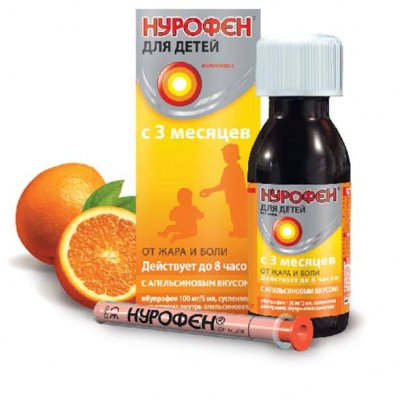 Nurofen je najčešći antipiretik za djecu, temeljen na ibuprofenu. Dostupan u obliku suspenzije, koja se uzima oralno. Koristi se za smanjenje temperature kod infekcija, respiratornih bolesti, gripe. Ona također pomaže smanjiti bolove u mišićima, grlu, ušima, ublažava migrene. Postoji nekoliko različitih okusa koje djeca vole (jagode, naranče, itd.). Imenovan djeci od 3 mjeseca do 12 godina. Veličina doze također varira ovisno o dobi: najmanja se daje 25 ml lijeka tri puta dnevno, za dijete od 3 godine doza se udvostručuje, itd. Za praktičnost, proizvođač osigurava posebnu štrcaljku s mjernom ljestvicom, s kojom možete lako dati lijek djetetu. Ima veliki popis kontraindikacija, uključujući bolesti gastrointestinalnog trakta, zatajenje bubrega, dijatezu, alergiju na fruktozu, itd. Kada ga koristite, trebate biti oprezni jer Nurofen ima mnoge moguće nuspojave.