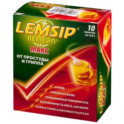 Lijek iz najbolje poljoprivredne tvrtke Reckitt Benckiser Healthcare, ukorijenjen na tržištu od 1955. godine, zaradio je pozitivan ugled u Americi, Engleskoj, Europi i zemljama ZND-a. Odgovarajući svim ruskim standardima, prašak dolazi iz Velike Britanije, u krugovima terapeuta, "Lemsip" je dobio slavu broj 1 u obliku puštanja za rješavanje prehlade. Lijek ima složen učinak, eliminirajući nelagodu u grlu, nazalnu kongestiju i, naravno, smanjenje temperature, jer je paracetamol na čelu sastava. Na prodaju je okus limuna i ribizle, kao i Lemsip MAX. Prva dva sadrže 650 g paracetamola na 4,8 g vrećice, a Lemsip MAX - 1000 mg - maksimalno dopuštenu dozu za odrasle. Učinak, na temelju pregleda, dolazi za 20 minuta i traje 5 sati. Ugodan okus pripremljenog ljekovitog napitka još je jedan argument za odabir "Lemsipa".