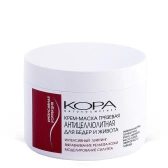 KORA maska protiv celulita iz KORA uklanja učinak "narančine kore" i drugih nepravilnosti kože. Ima učinak zatezanja, regeneracije i protuupalnoga djelovanja, koji se postiže ugrađivanjem plave gline, ulja lavande i muljevog blata. Krema poboljšava čvrstoću i elastičnost kože, te pomaže u uklanjanju ožiljaka i strija. Preporučeni broj obloga je 1-2 puta tjedno.