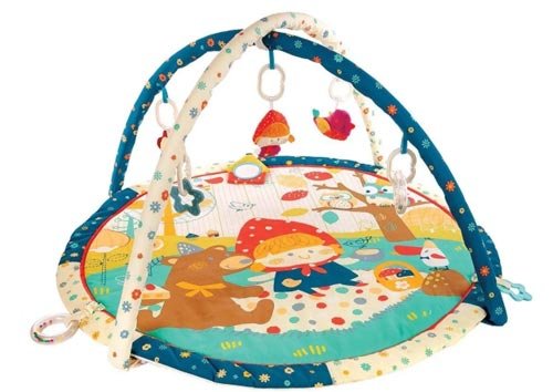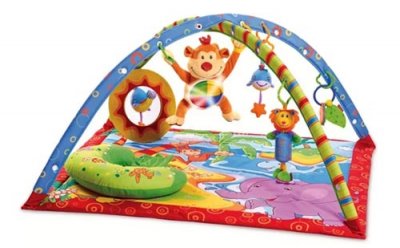 Tepih za djecu iz popularne marke Tiny Love pravi je igraći centar za najmlađe. Na dva luka nalaze se razne vrste igračaka. Među njima su teether, zvečke, privjesci u obliku različitih životinja, zvona, veliko ogledalo, itd. No, najvažnija razlika je prisutnost glazbenog playera s nekoliko melodija. Obično privlači najviše pažnje prema djetetu. Povećana veličina (110 x 102 cm) daje mnogo prostora za razvoj fizičkih vještina. Zanimljivi elementi na određenoj udaljenosti potiču bebu na kretanje.