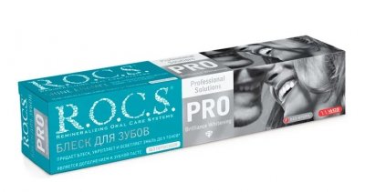 Gel za zube Pro Glitter od domaćeg proizvođača R.O.C.S. ne samo da je osvijetlila ton emajla, već i učinila vaš osmijeh doista blistavim. Glitter efekt nastaje uz pomoć vlažnog filma koji se formira na površini zuba nakon prve uporabe gela. Za stabilan rezultat, preporuča se primijeniti lijek na zube 2-3 puta dnevno tijekom dva tjedna. Nakon cijelog tečaja, programeri obećavaju da će spasiti rezultat za najmanje šest mjeseci. Gel ne sadrži abrazivne tvari, a također je slobodan od fluora i njegovih spojeva, što omogućuje upotrebu R.O.C.S. Pro za pacijente s urođenom ili stečenom fluorozom.