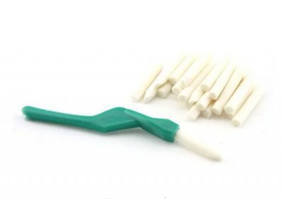 Najjednostavniji i najbrži način da uklonite površinske naslage sa zuba i učinite ih malo bjelji. Piling ovog tipa je proizvod kineskog podrijetla. Napravljen je od poliestera i djeluje po principu obične gumice, briše samo mrlje na papiru, ali i na zubima. Naravno, nema potrebe čekati visokokvalitetno i dugo izbjeljivanje takvog proizvoda. No, kako bi se zubi brzo stavili u red nakon čaše crnog vina s jakim pigmentom, sasvim je prihvatljivo koristiti gumicu. Za jednostavnost korištenja u setu ima poseban držač - prikladna plastična ručka. Jedan set sadrži 25 savitljivih vrhova duljine 27 mm.Zbog svoje male veličine, dizajn se može nositi sa sobom i koristiti ga prema potrebi.