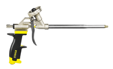 Ako vam je potreban pištolj za profesionalnu klasu pjene, ali sredstva ne dopuštaju kupnju skupog alata, možete obratiti pozornost na proračunski model njemačke marke STAYER. Unatoč činjenici da se proizvodnja provodi u Kini, pištolj je napravljen sasvim čvrsto, može izdržati česte i dugotrajne operacije. Prednosti modela uključuju izdržljiv metalni kovčeg, ergonomsku plastičnu dršku, igličasti ventil i mogućnost reguliranja protoka pjene.