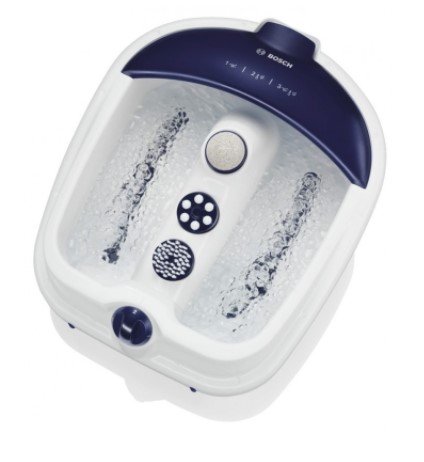 Bosch PMF2232 hidromasažna kupka za stopala od njemačkog proizvođača ima sve potrebne osobine za liječenje i opuštanje vaših nogu. Osim standardnih opcija izlaganja u obliku dva programa masaže (mjehurić i vibracijska masaža), uređaj može zamijeniti usluge profesionalnog pedikerskog majstora. U tu svrhu Bosch PMF2232 paket uključuje motorizirani centar za pedikir s 3 mlaznice - valjkom za kist, pumicu i masažu. Izgled dizajna razlikuje se od većine modela drugih proizvođača. Kupka ima više izduženog oblika i visokih strana, štiteći okolnu površinu od prskanja. Klasična kombinacija tamno plavih i bijelih nijansi čine masažer izuzetno privlačnim i elegantnim. Preporučeno vrijeme neprekidne uporabe opreme je 10 minuta, snaga je 65 W, cijena počinje od 3869 rubalja.