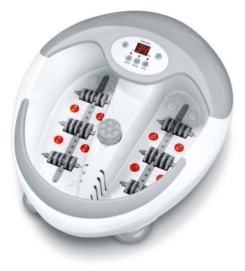 Masažer poznatog njemačkog proizvođača medicinske opreme Beurer GmbH namijenjen je mjehurićima i vibracijskim hidromasažama, a omogućuje i suhu masažu stopala s dodatkom ulja arome. 4 integrirana magneta aktiviraju stanice, opuštaju mišiće i potiču regeneraciju tkiva, a 8 infracrvenih emitera savršeno zagrijava zglobove, vraćajući im pokretljivost i olakšavajući bolni sindrom. Pomoću elektroničkog podešavanja moguće je odabrati željenu temperaturu u rasponu od 35 do 48 ° C i podesiti vrijeme postupka (od 20 minuta do jednog sata). Beurer FB50 kadica je vrlo pogodna za rad - dizajn je opremljen ugrađenim tajmerom i LCD zaslonom na kojem možete pratiti informacije o stanju uređaja. Težina proizvoda je 5,2 kg, dimenzije - 22,0 x 39,0 x 50,0 (cm).