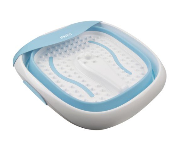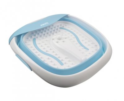 Prikladan oblik kupke i velika zapremnina vode (oko 20 litara) omogućuje HoMedics FB-350-EU da se koristi za uranjanje stopala bilo koje veličine i veličine. Ovaj model razvijen je kao univerzalni masažer prikladan za upotrebu i kod žena i kod predstavnika jačeg spola. Dizajn proizvoda u velikoj mjeri pridonosi tome - on je prilično lakonski, izrađen u neutralno plavo-bijeloj ljestvici. Još jedna značajka uređaja je mogućnost preklapanja strukture. U ovom obliku, kupatilo zauzima minimum slobodnog prostora, pogodno je držati ga kod kuće i možete ga ponijeti sa sobom kada putujete u ladanjsku kuću ili u drugi grad. Oprema je opremljena s podnožjem za gel, tijelo je izrađeno od kombinacije plastike i silikona. HoMedics FB-350-EU radi samo u jednom načinu rada, što se može nazvati nedostatkom. Međutim, ovaj masažer je povoljan u usporedbi s drugim kombinacijama velikog volumena i kompaktnosti, kao i niskom cijenom.