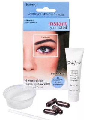 Godefroy je najpopularniji američki proizvođač kane. Boja obrva Prirodna nijansa obrva već se dokazala među djevojkama diljem svijeta. Idealan je za uporabu u salonima. Posebne komponente sastava osiguravaju najveću otpornost - do 1,5 mjeseca. Komplet uključuje kapsule i oksidans koji se mora miješati prije upotrebe.