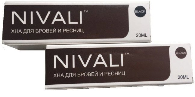 Nivali ima potpuno prirodan sastav, ne iritira kožu, prikladan je za trudne djevojke. Kana dolazi u velikoj tubi, što je dovoljno za 40 aplikacija. Ovo je malo vrijedno visoke cijene. Proizvođač nudi samo 2 nijanse: crnu i smeđu. U svom čistom obliku, potonje izgleda crveno, pa miješanje zahtijeva vještinu. Kana se odmah pojavljuje na koži, pogodno je kontrolirati stupanj bojenja. Važno je strogo slijediti upute, a zatim će se alat ravnomjerno oprati, bez ćelavih mjesta. Omogućuje crtanje dlačica, učinak traje do 3 tjedna.