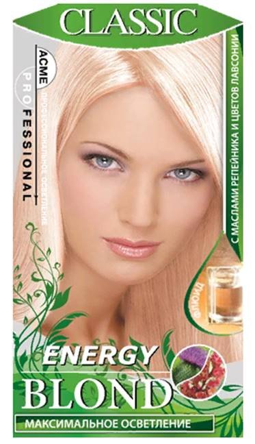 Volumen praha za posvjetljivanje je 30 g, tako da će vam trebati 2 Energy Blond Classic pakiranja za duljinu kose ispod ramena. Postupak izbjeljivanja trebao bi trajati strogo ne više od 50 minuta, kao što kažu u recenzijama, najoptimalnije vrijeme zadržavanja boje 25-30 minuta.