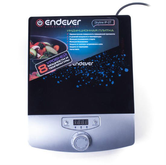 Svi indukcijski štednjaci su nekoliko puta ekonomičniji od električnih. Model IP-27 poznate švedske tvrtke Endever nije iznimka: troši manje struje, jer se može prilagoditi određenom promjeru broda i zagrijati samo potrebnu površinu. Zbog činjenice da se kuhanje u mjesečini odvija u uvjetima povišenih temperatura u prisutnosti zapaljivih tvari, proizvođači su posebnu pozornost posvetili sigurnosti konstrukcije: izradili su tajmer za razdoblje od 1 min. do 4 sata, za 8-stupanjsko podešavanje načina napajanja (200, 500, 800 ... 2000 W), kao i 8 postavki temperature (80, 100, 130 ... 240 °).