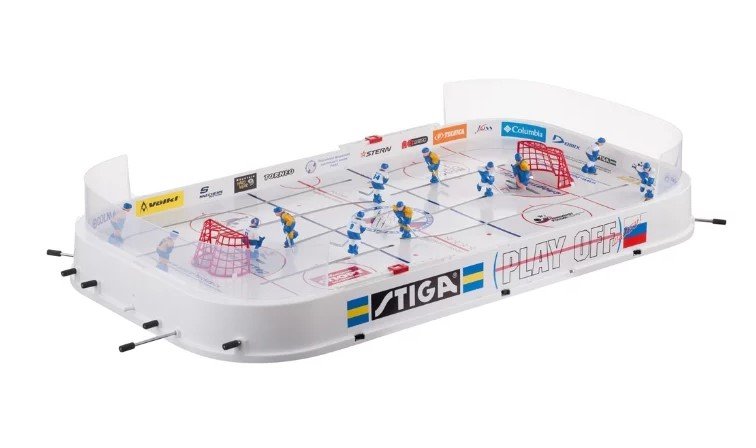 "Zlato" u kategoriji opreme za stolni hokej pripada već spomenutom švedskom proizvođaču STIGA. Ukupno poduzeće proizvodi 4 igrališta - Stiga Play Off, Stiga Stanley kup, Stiga High Speed Edition i Stiga Crvena linija. Svaka varijacija ima svoje osobine dizajna i stabilna je potražnja među amaterima i profesionalcima. Međutim, smatra se da je klasični model razvijen 1983. godine STIGA Play Off. Igra na ploči je od tada modificirana nekoliko puta i sada je referentni hokej.