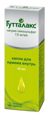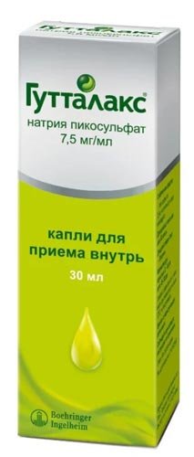 Lijek "Guttalaks" dolazi u obliku kapljica, čija je aktivna tvar natrijev pikosulfat monohidrat. Odnosi se na vrstu iritirajućih lijekova. To uzrokuje da se receptori crijevnog zida kontrahiraju, te tako izbacuju izmet. Laksativni učinak primjećuje se nakon nekoliko sati, jer komponente lijeka djeluju vrlo nježno. Pogodno za djecu iznad 3 godine.