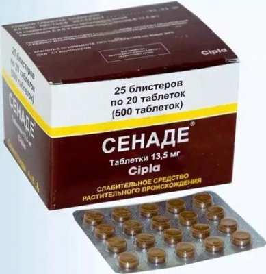 Biljni pripravak "Senade" indiciran je za opstipaciju različitog stupnja i pogodan je za starije osobe. Temelji se na uobičajenom laksativnom ekstraktu lišća senne. To je iritant za crijevni zid i doprinosi stimulaciji peristaltike. Počinje djelovati u prosjeku 8 sati nakon gutanja.