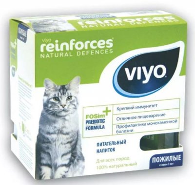 Prekrasno piće koje sadrži prebiotike namijenjene starijim mačkama. Ovi kućni ljubimci uključuju sve starije od sedam godina. Posebno im je potrebna pažnja i podrška vlasnika.Viyo Reinforces Cat Senior pomaže pojačati imunitet i učiniti tijelo otpornijim na borbu protiv infekcija i patogenih bakterija. Tekući oblik lijeka djeluje mnogo učinkovitije od analoga u obliku tableta. To se brže i bolje apsorbira u crijevima, prodirući u stanice i uklanjajući toksine iz tijela, koji nastaju tijekom smrti crva.