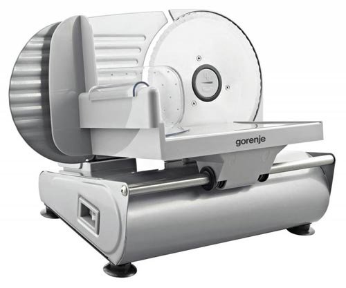 Električni model Gorenje R506E ima udobnu radnu površinu, smještenu na maloj prednaponi. Nagib omogućuje slobodno kretanje proizvoda na nož. Debljina rezanja je regulirana metalnim vodilicama i postavljena je od 2 do 15 mm. Noževi u uređaju izrađeni su od nehrđajućeg čelika promjera 19 cm.