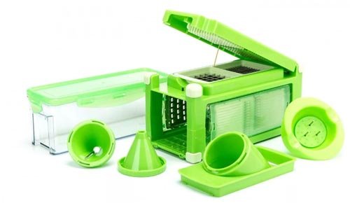 Nicer-Dicer Plus Home Slicer je svestrani uređaj za razne vrste rezanja povrća, voća i sira. Uključuje 4 mlaznice s različitim rasponima debljine. Također je moguće brzo izrezati proizvode u klinove, štapove ili četvrtine. Uređaj je nevjerojatno učinkovit i višenamjenski, ali ima lijepu cijenu.