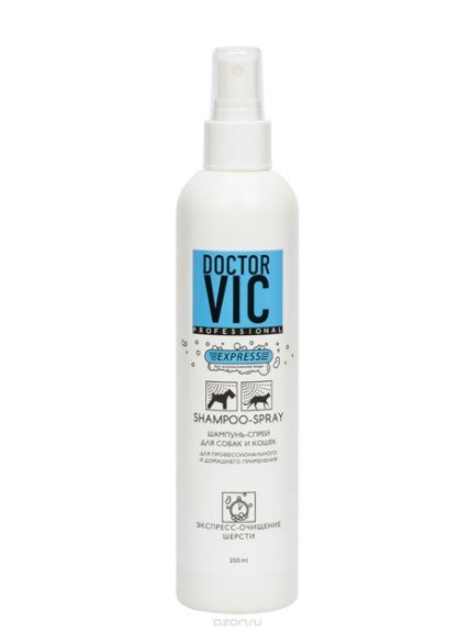 Doctor Vic šampon sprej je pravo spasenje za vlasnike onih pasa koji se u panici boje kupanja. Naravno, potpuni tretman vode ne može se zamijeniti raspršivanjem. Ali za ekspresno čišćenje dok putujete ili držite izložbu, šampon koji ne zahtijeva ispiranje će vam dobro doći.