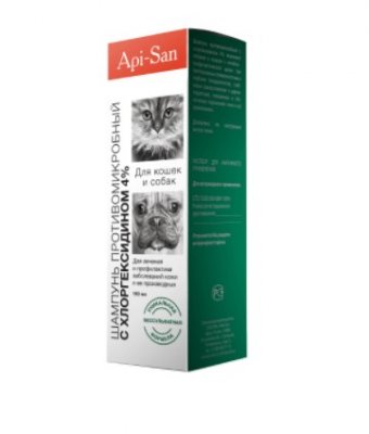 Antimikrobni šampon s klorheksidinom od 4%, razvijen u moskovskom laboratoriju NPO "Api-San", odnosi se na antiseptičke lijekove. Ima snažan antimikrobni učinak i bori se protiv kožnih bolesti kao što su površinski i duboki piodermatitis, dermatofitoza, atopijske lezije kože, mikoze.