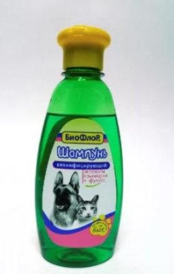 Šampon "Dezinfekcijsko sredstvo" iz tvrtke Bioflor - izvrstan je alat za sprječavanje pojave parazita kose kod mačaka. Proizvod sadrži ekstrakt kelpa koji je zasićen biološki aktivnim tvarima koje savršeno vlaže i dezinficiraju kožu životinje. Komponenta permetrin tretira i sprječava pojavu parazita. Također, šampon je obogaćen ekstraktom fikusa koji djelotvorno omekšava i štiti kožu od štetnog djelovanja krvi.