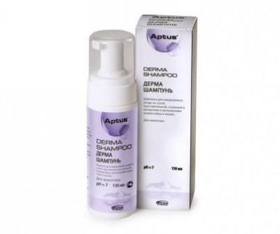 Ako vaša mačka ima osjetljivu kožu sklonu alergijama i desquamation, preporučujemo odabir šampona Aptus Derma. Povećava prirodnu otpornost kože i razinu vlage nakon 7 dana uporabe. Koristite alat mora biti 2 puta tjedno, masirati ljubimac krzno za 7-10 minuta. Brzo uklanja iritaciju i svrab, pa se često propisuje nakon infekcija kože.
