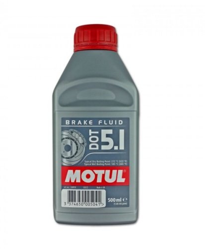 Tekućina za kočnice Motul DOT 5.1 Kočiona tekućina dizajnirana je za automobile opremljene sustavom protiv blokiranja kotača. Proizvod je baziran na glikolu, što omogućuje njegovu primjenu sa standardnim tekućinama DOT 3 i DOT 4. To znači da kupnjom Motul DOT 5.1 možete dodati tormozuhu i ne isprazniti stari sastav. Svježa tekućina kipi na visokoj temperaturi (272 ° C), ali nakon što je apsorbirala određenu količinu vlage, ova brojka pada na 185 ° C. Visoka viskoznost (820 m 2 / s) omogućuje upravljanje automobilom na temperaturama do -40 ° C. Učestalost zamjene kočione tekućine u automobilu je jednom godišnje.