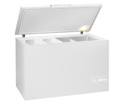 Vrlo moćna i prostrana prsa poznate slovenske marke. Njegov korisni volumen je 380 litara, kapacitet zamrzavanja doseže izvrsnu stopu od 26 kg dnevno. Uz sve to, model radi dovoljno tiho - razina glasnoće ne prelazi 43 dB. Također, među značajkama koje vrijedi istaknuti očuvanje hladnoće za 38 sati u slučaju nestanka struje, svjetlosni pokazatelj otvorenog poklopca, praktična organizacija unutarnjeg prostora.